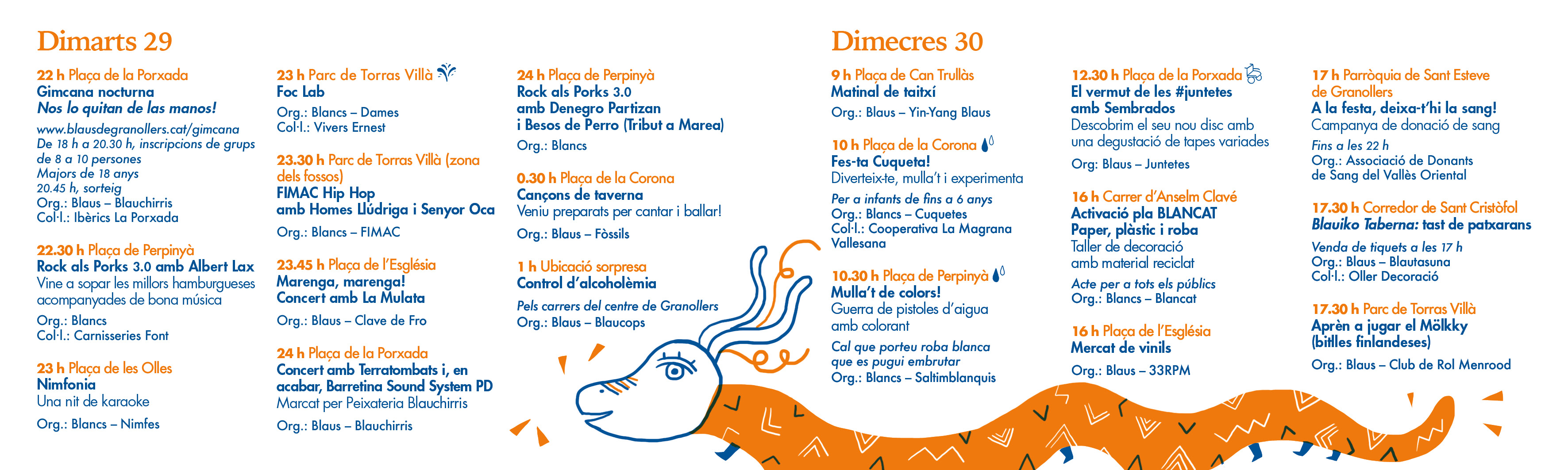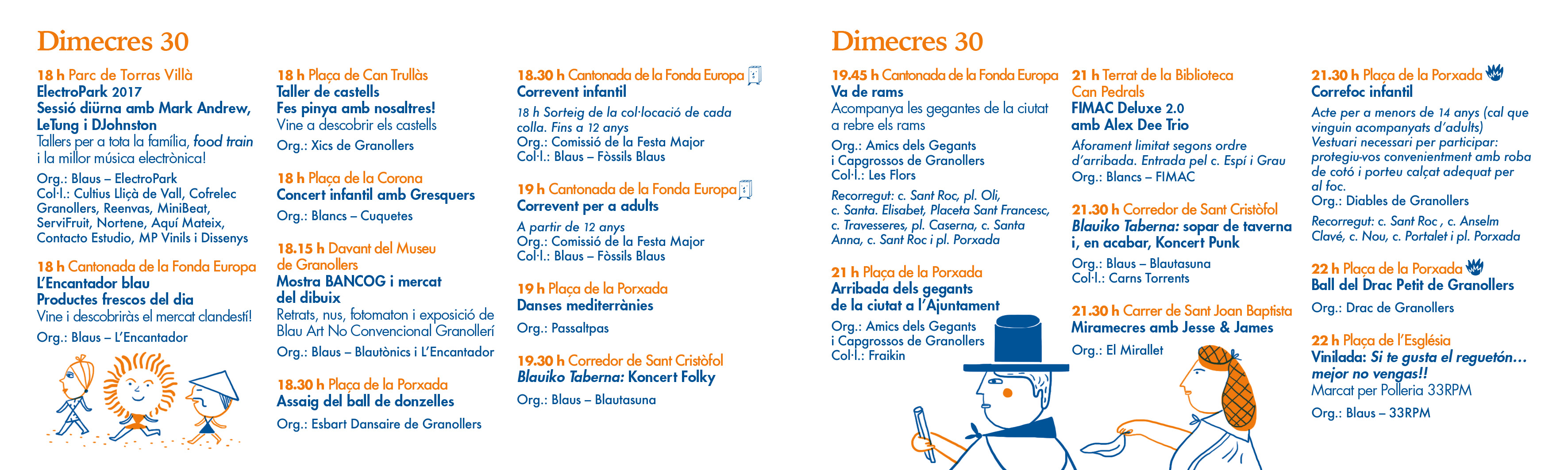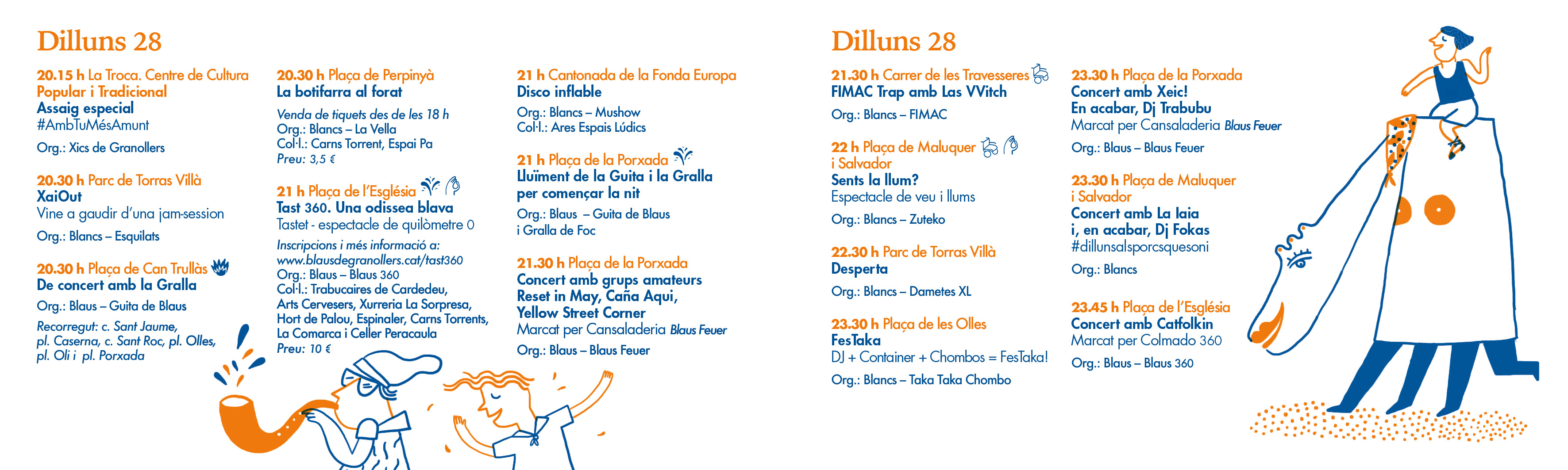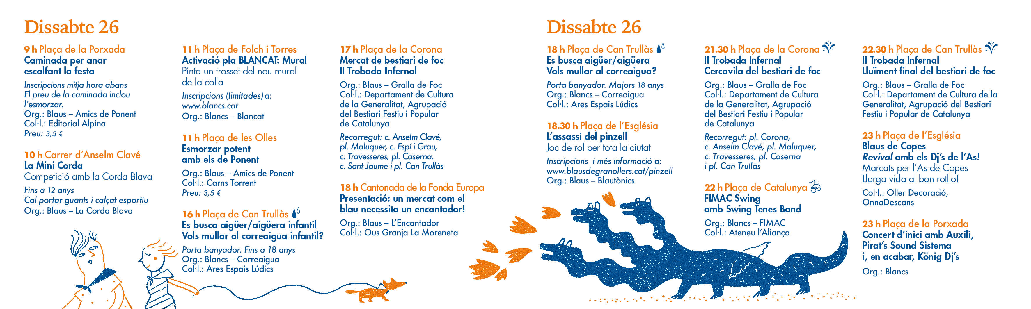 La campaña gráfica se basa en el concepto de 'la Cercavila' o el Pasacalles, ese momento donde la gente y 'les colles' sale a la calle y se pasea por la ciudad. En todas las aplicaciones encontramos personajes representativos de la colla dels Blaus, de la colla dels Blancs, símbolos y personajes característicos de la Fiesta; el Colom, el ladrillo, el sombrero de la Diablessa, el gigante Tirant, una dama de foc, una bastonera, el pájaro Komantche, la Guspira, la Gralla Blava, un porrón, una cuca blanca y un draguet.