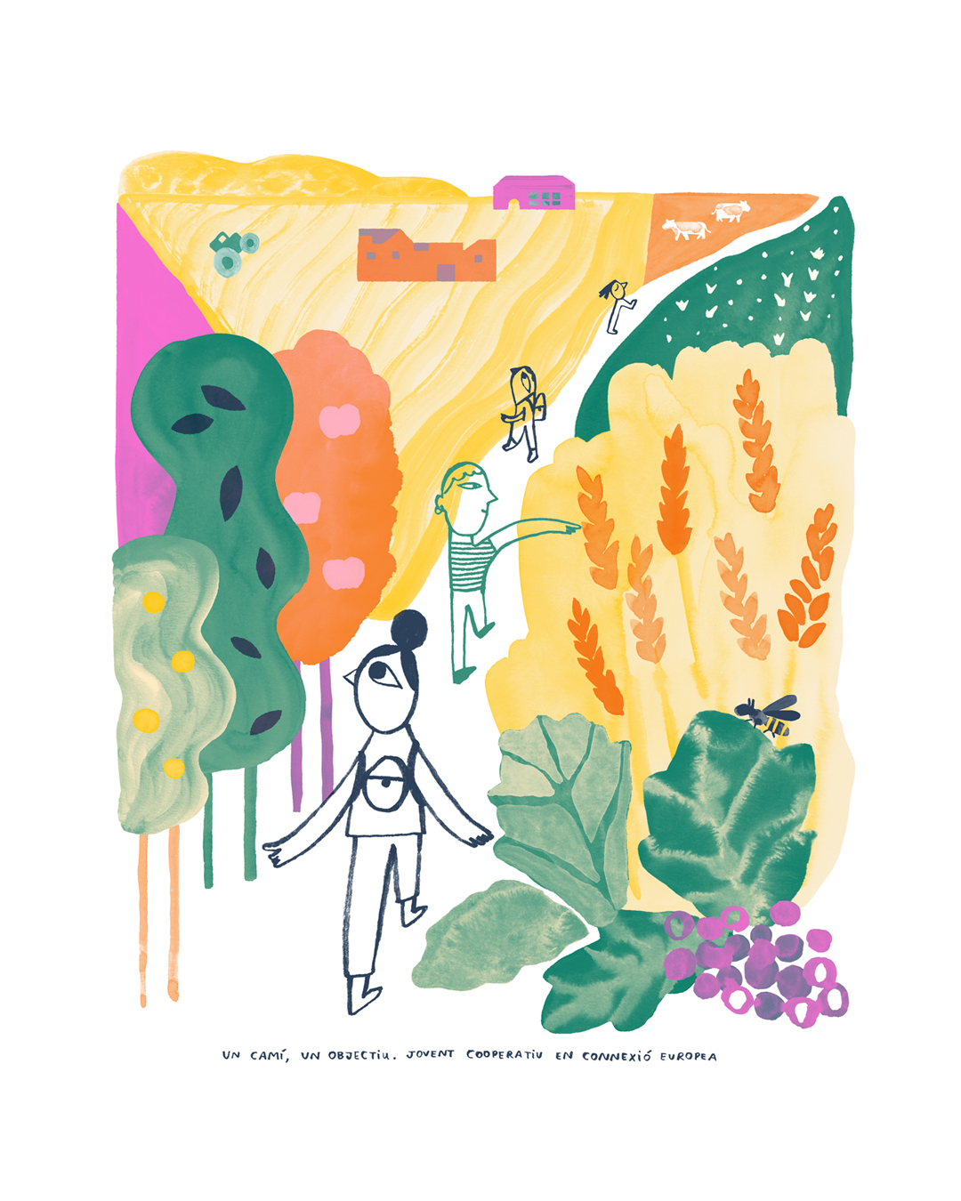 Portada para la revista Agroactivitat de la Federació de les Cooperatives Agràries de Catalunya. Con la temática del viaje técnico para jóvenes para visitar las cooperativas de la península.