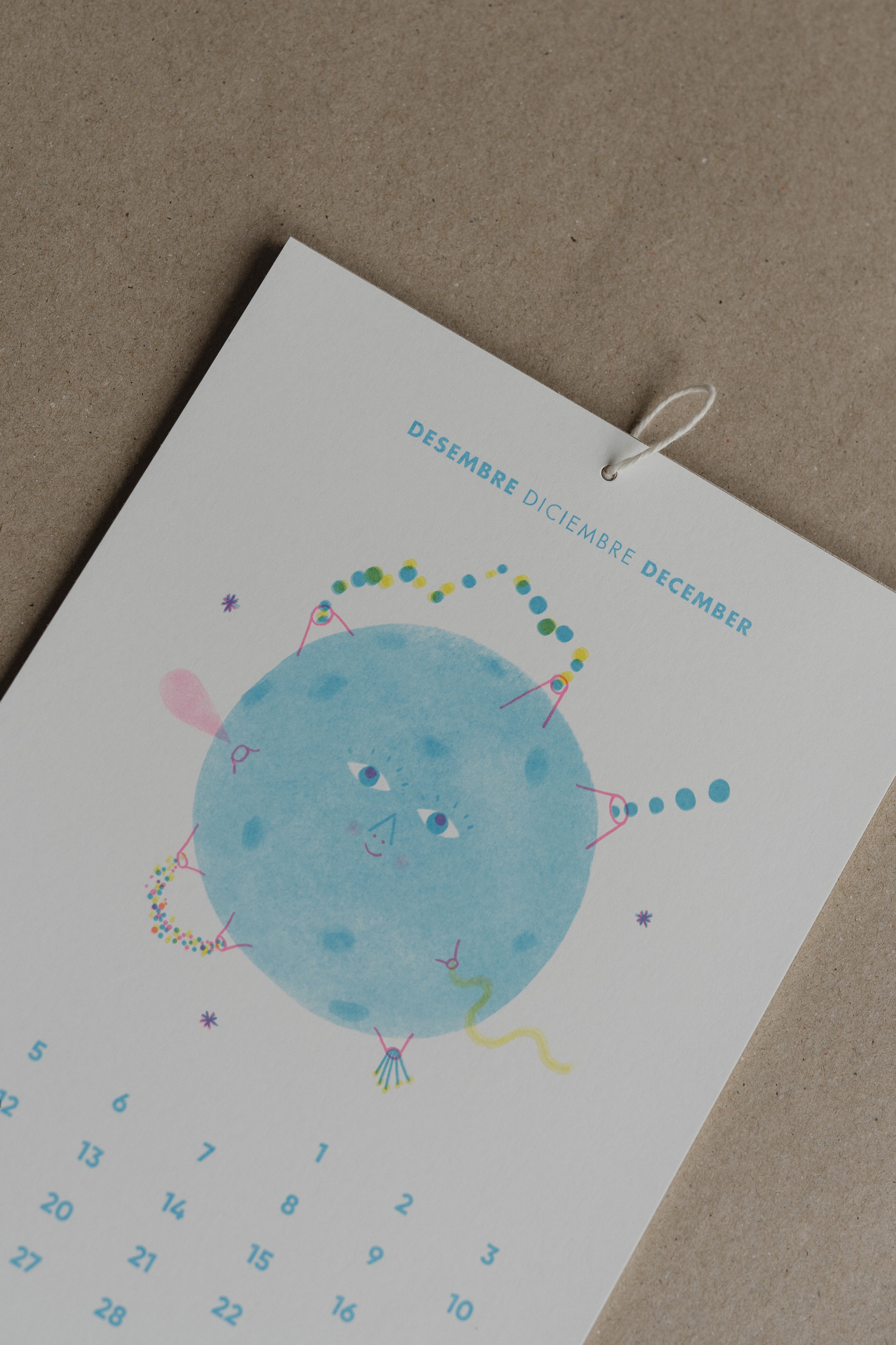 Calendari 2023 amb el lema 12 poders. Cada mes és una acció-poder representada per un element de la natura.