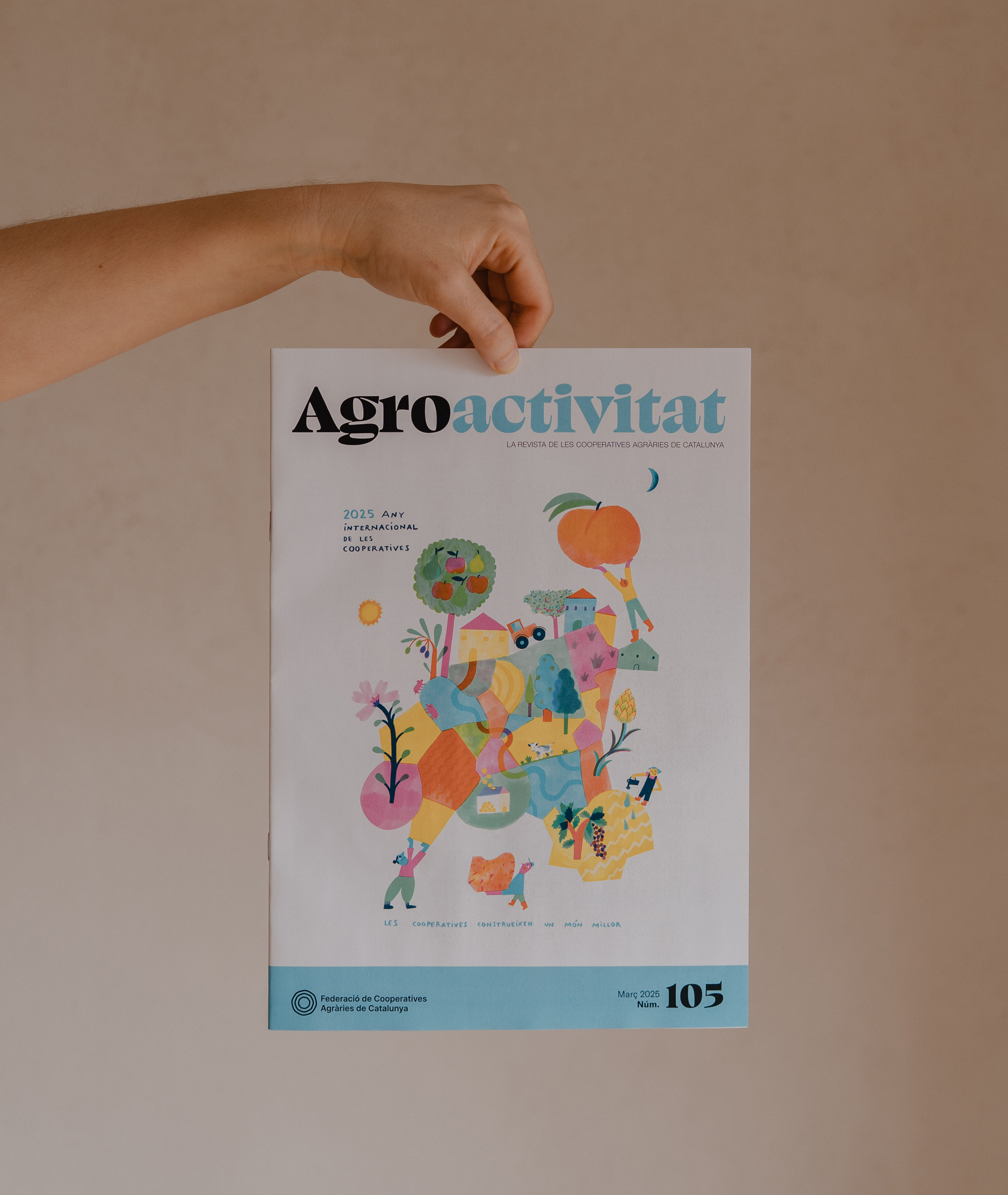 Portades per a la revista Agroactivitat de la Federació de Cooperatives Agràries de Catalunya. Amb la temàtica de l'Any Internacional de les Cooperatives i el Viatge tècnic per a joves per visitar les cooperatives de la península.