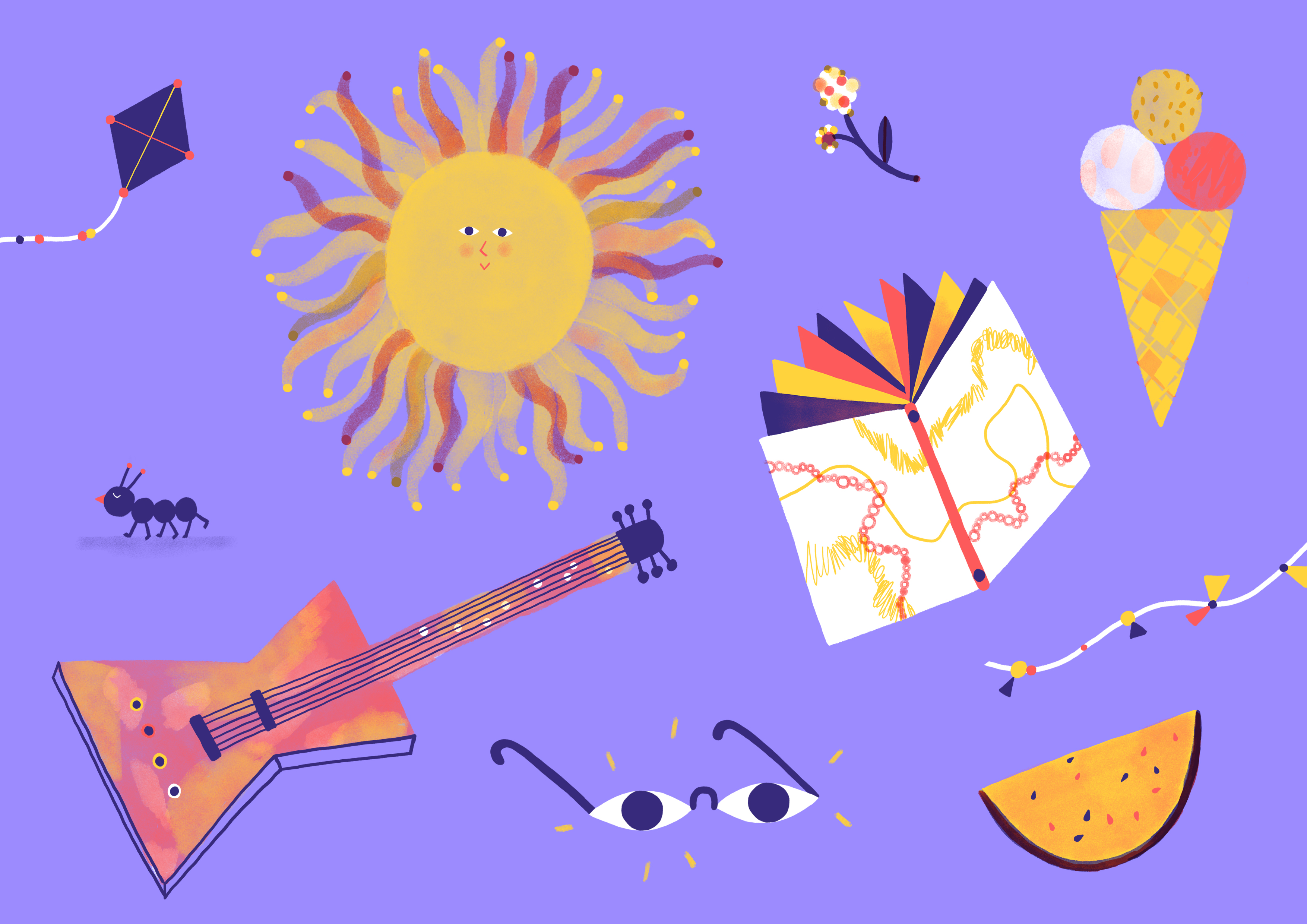 Represento varis elements relacionats amb l'estiu i la cultura.