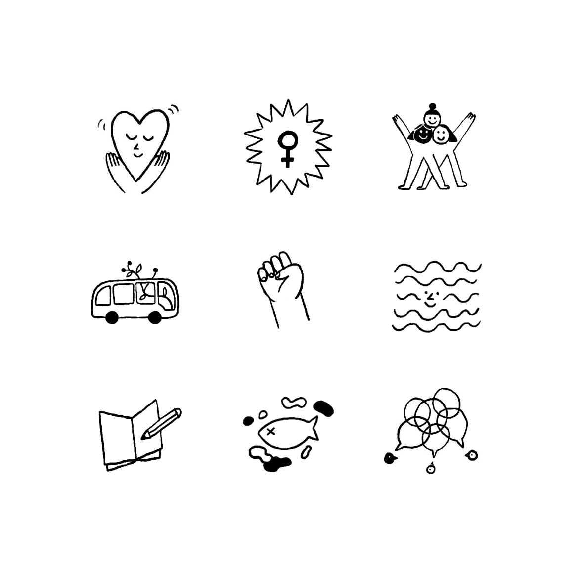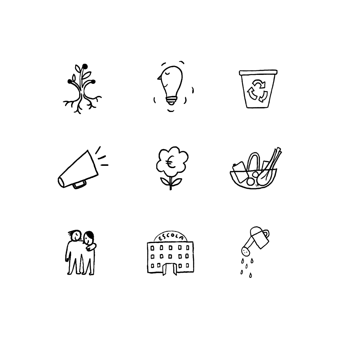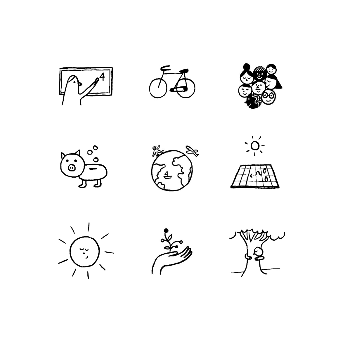 Il·lustracions icòniques per a crear una col·lecció de xapes dels ODS (Objectius pel Desenvolupament Sostenible) pel Consell Català del llibre infantil i juvenil.