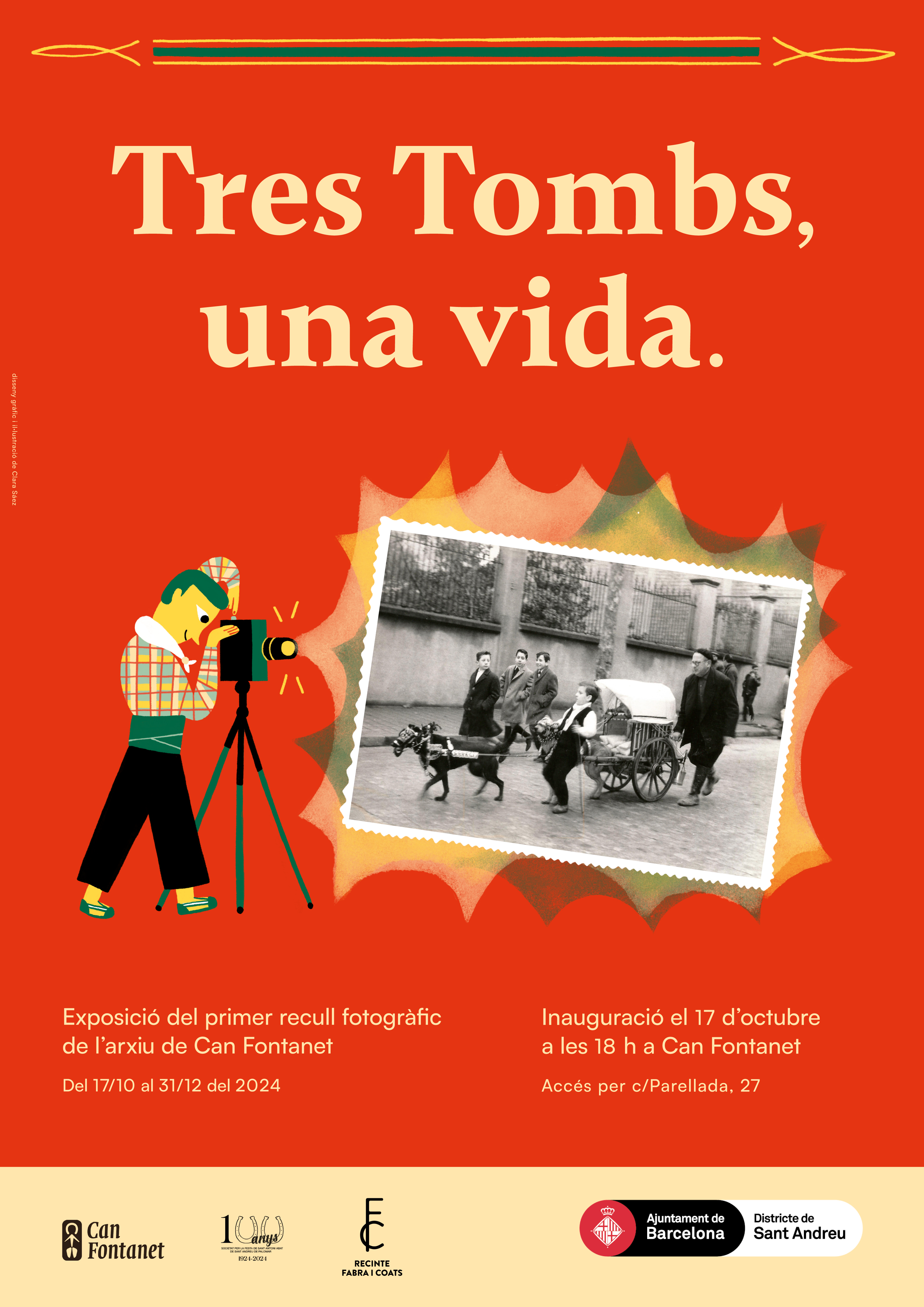 Il·lustracions i disseny gràfic de l'exposició fotogràfica Tres Tombs, una vida. Organitzada per Can Fontanet al recinte Fabra i Coats de Barcelona.