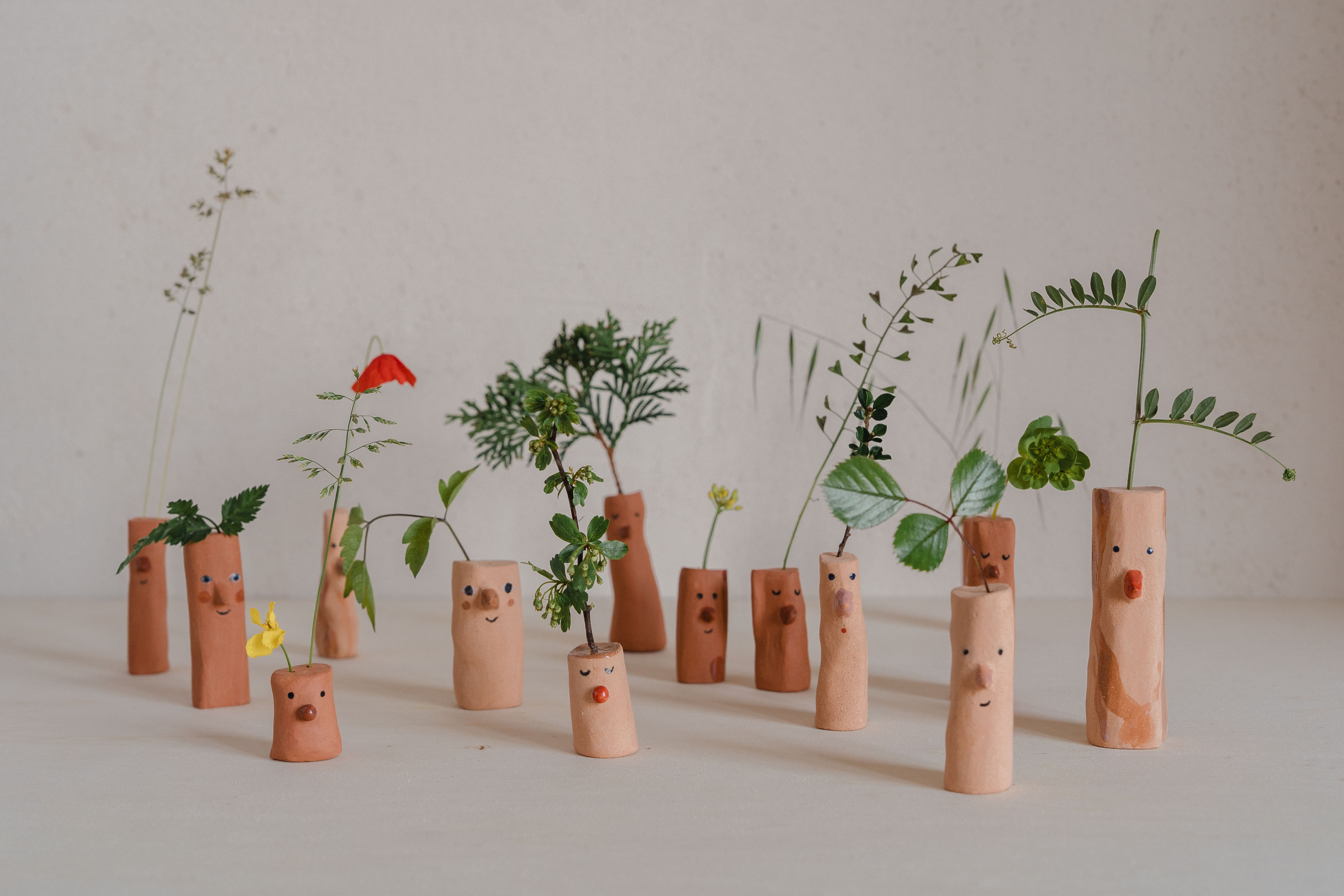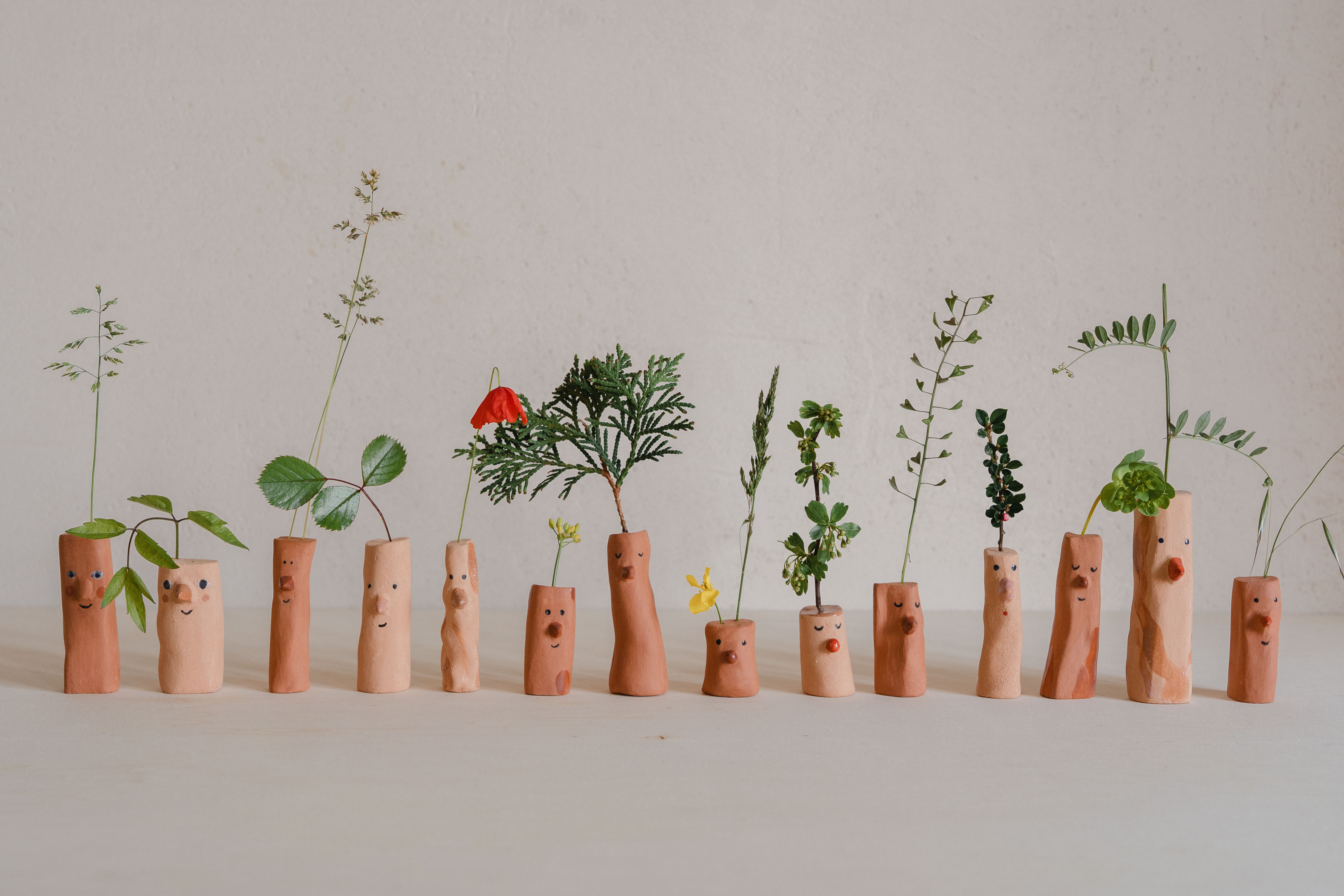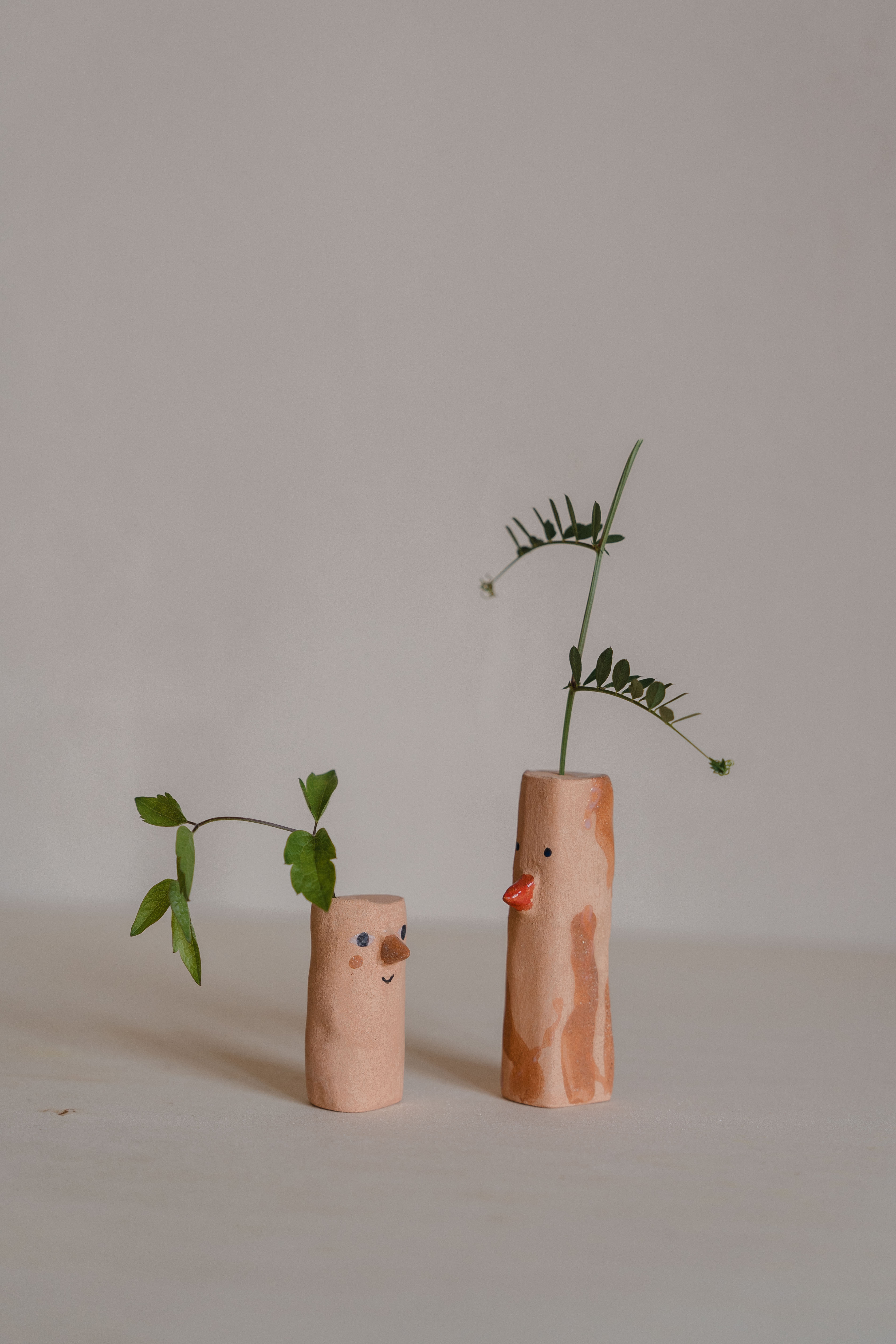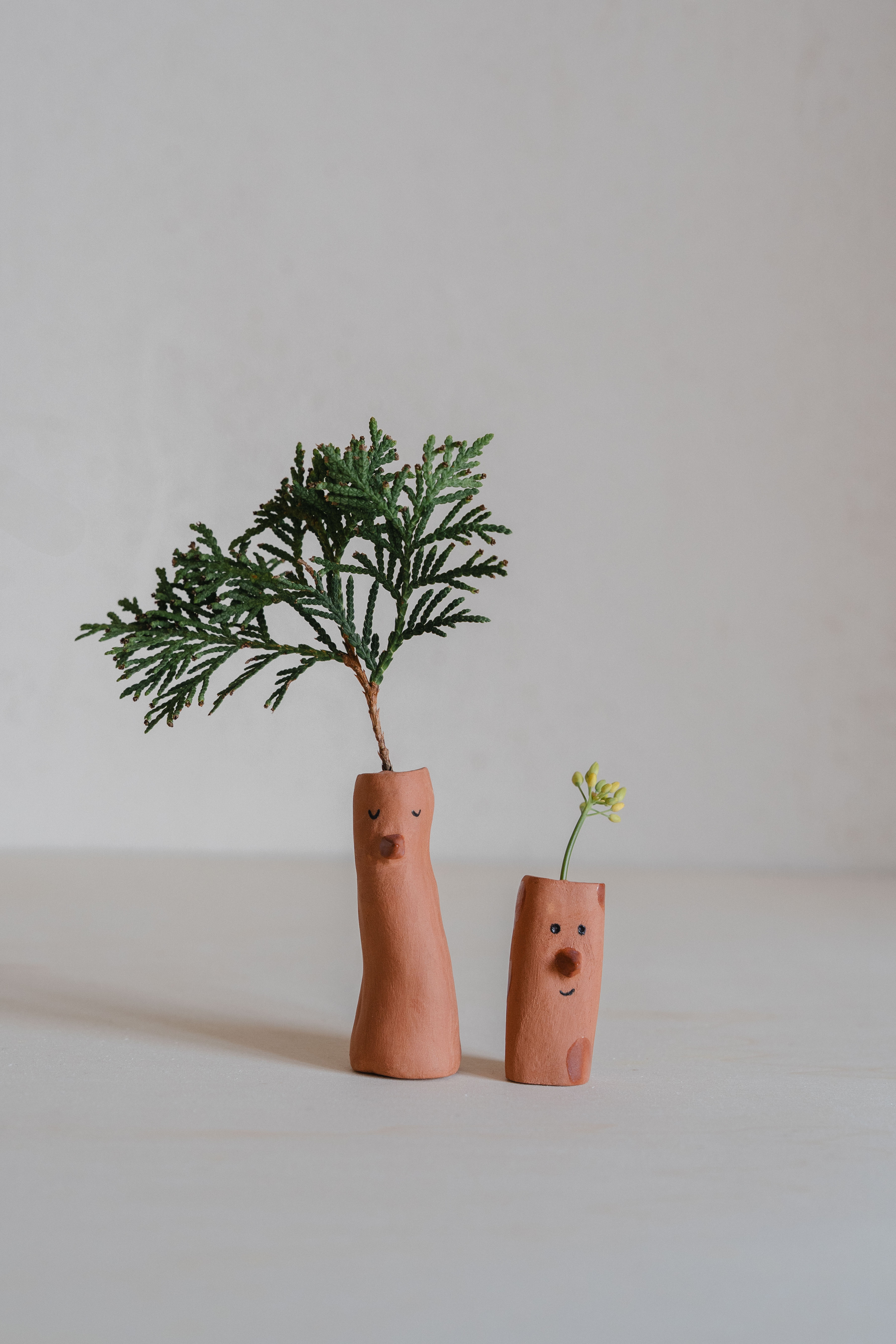 Troncs diversos fets amb fang vermell amb detalls esmaltats.